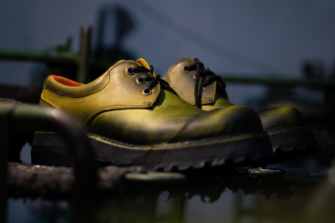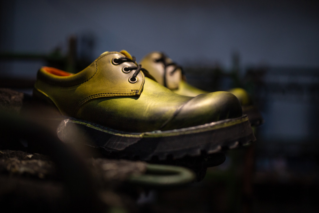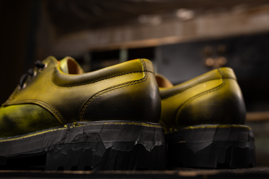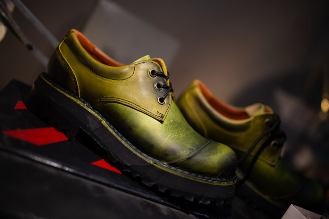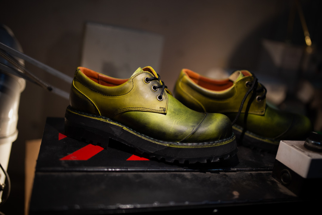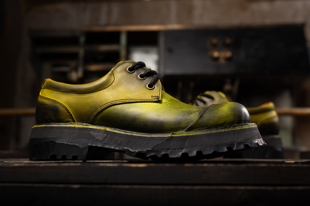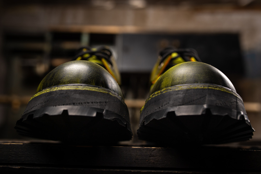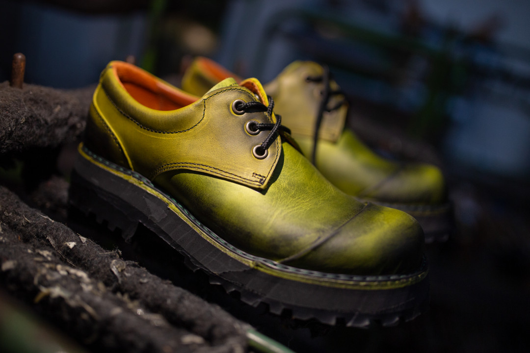 Высокая подошва призвана игнорировать осенние зимние лужи и слякоть. Сами слои набраны из ЭВА для облегчения, нижняя же часть подошвы — настоящая резина. Подошва нарочито небрежно обрезана ножом.