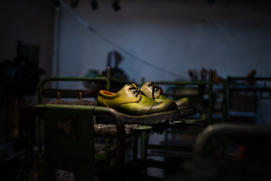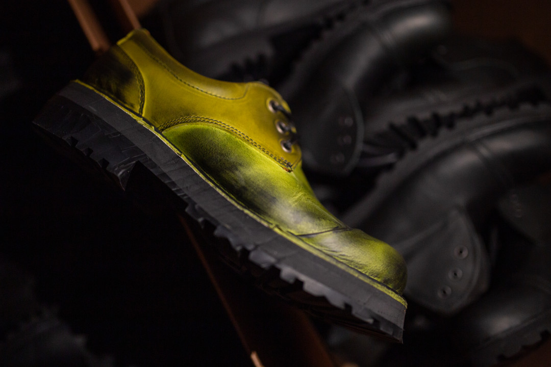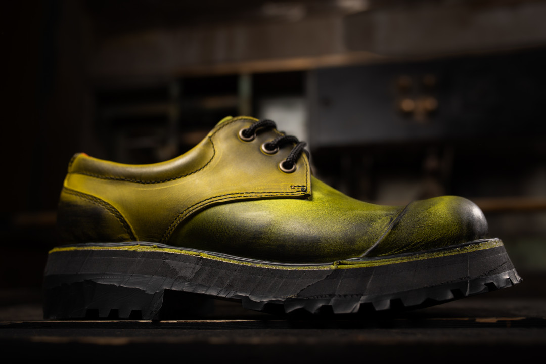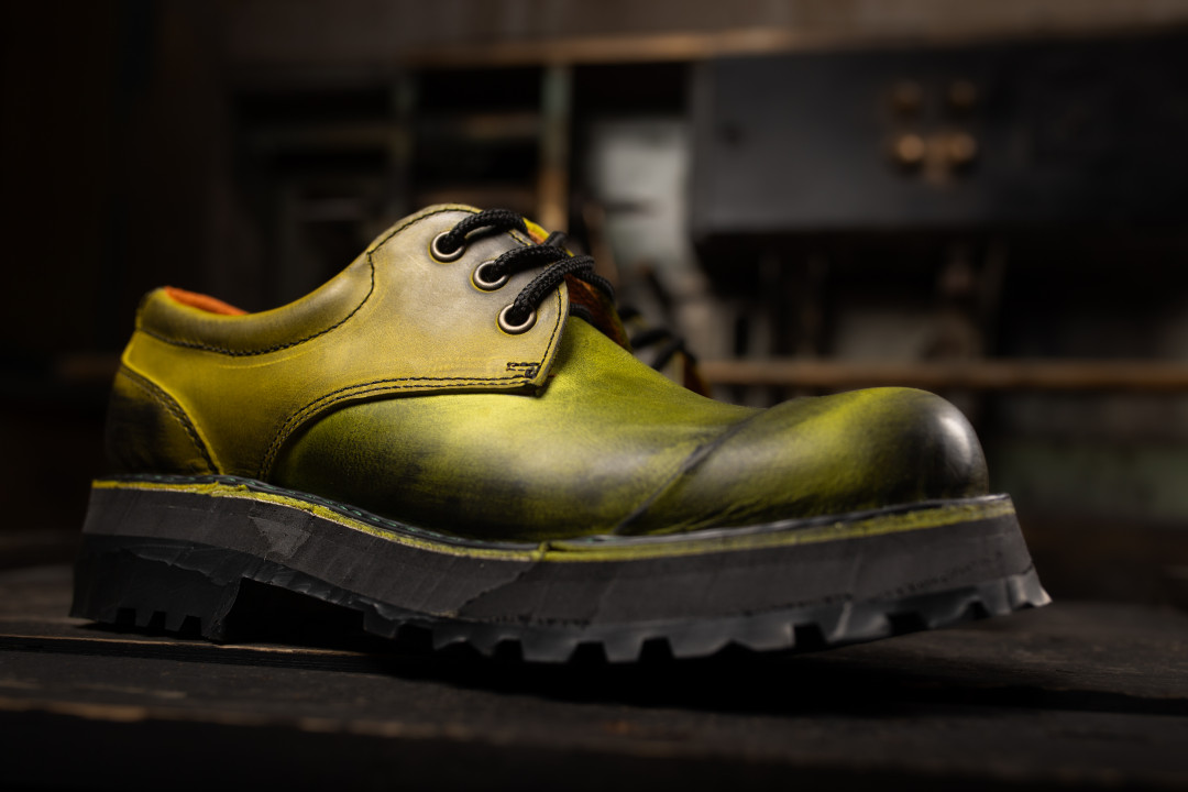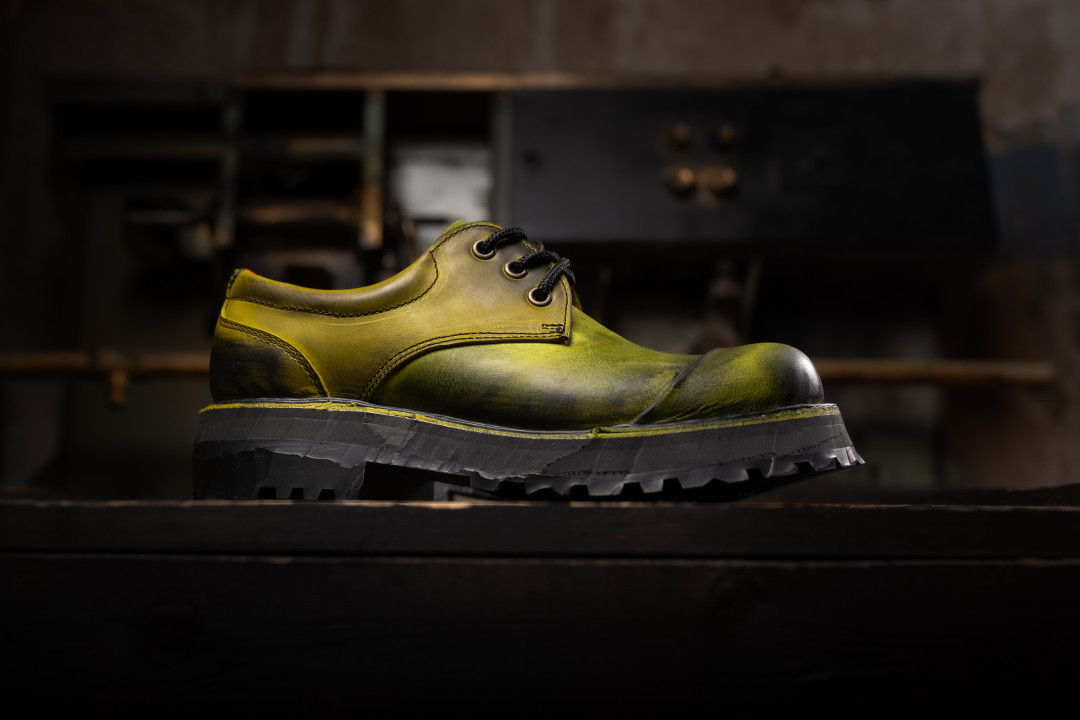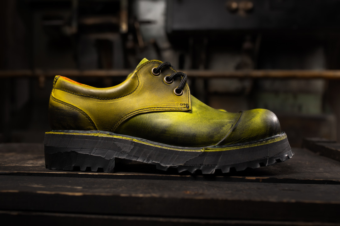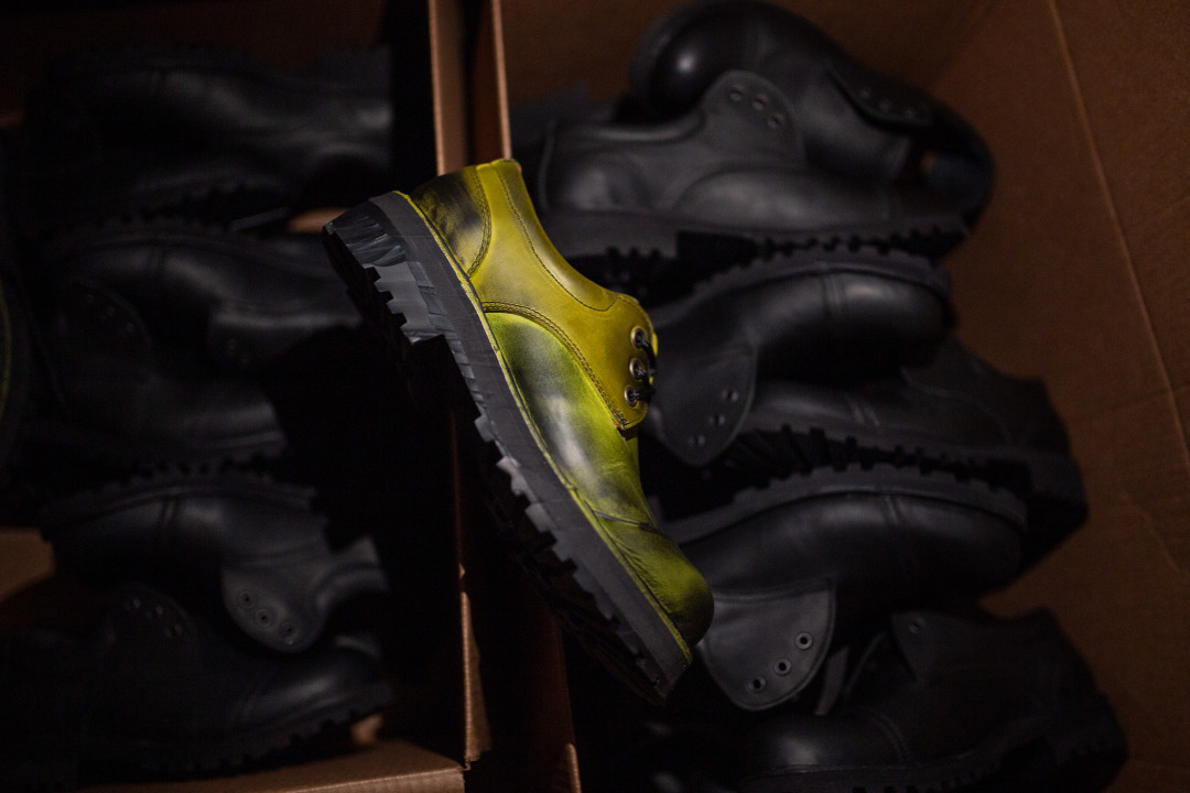 Высокая подошва призвана игнорировать осенние зимние лужи и слякоть. Сами слои набраны из ЭВА для облегчения, нижняя же часть подошвы — настоящая резина. Подошва нарочито небрежно обрезана ножом.
