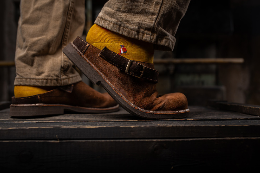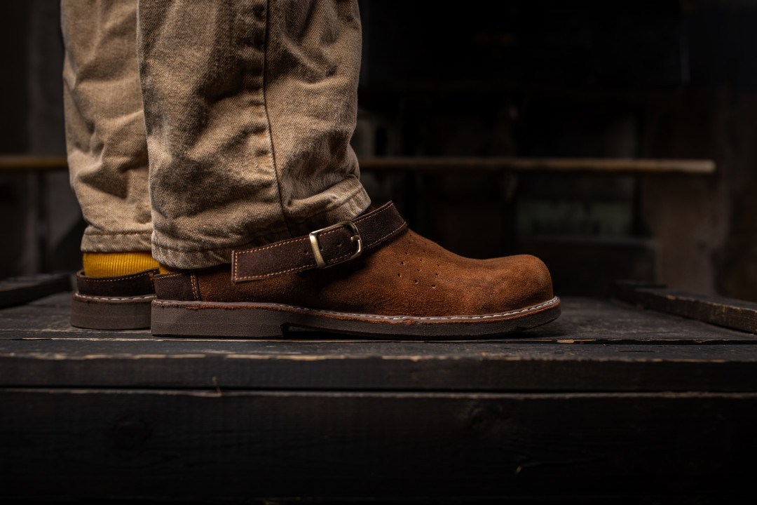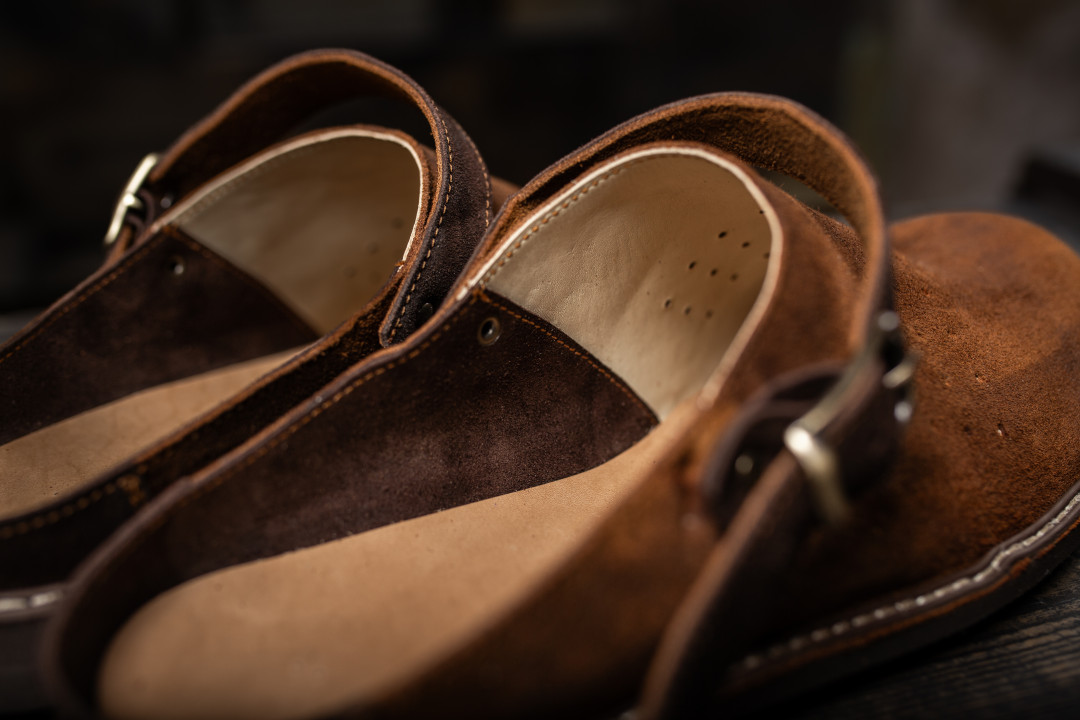 Аутентичный вариант из очень толстой кожи, без подкладки в носу и на ремнях. Кожа к ноге естественным бархатистым слоем, забирает максимум влаги, отдает максимум комфорта. Никакого клея между ногой и верхом. Прошиваются без ранта.